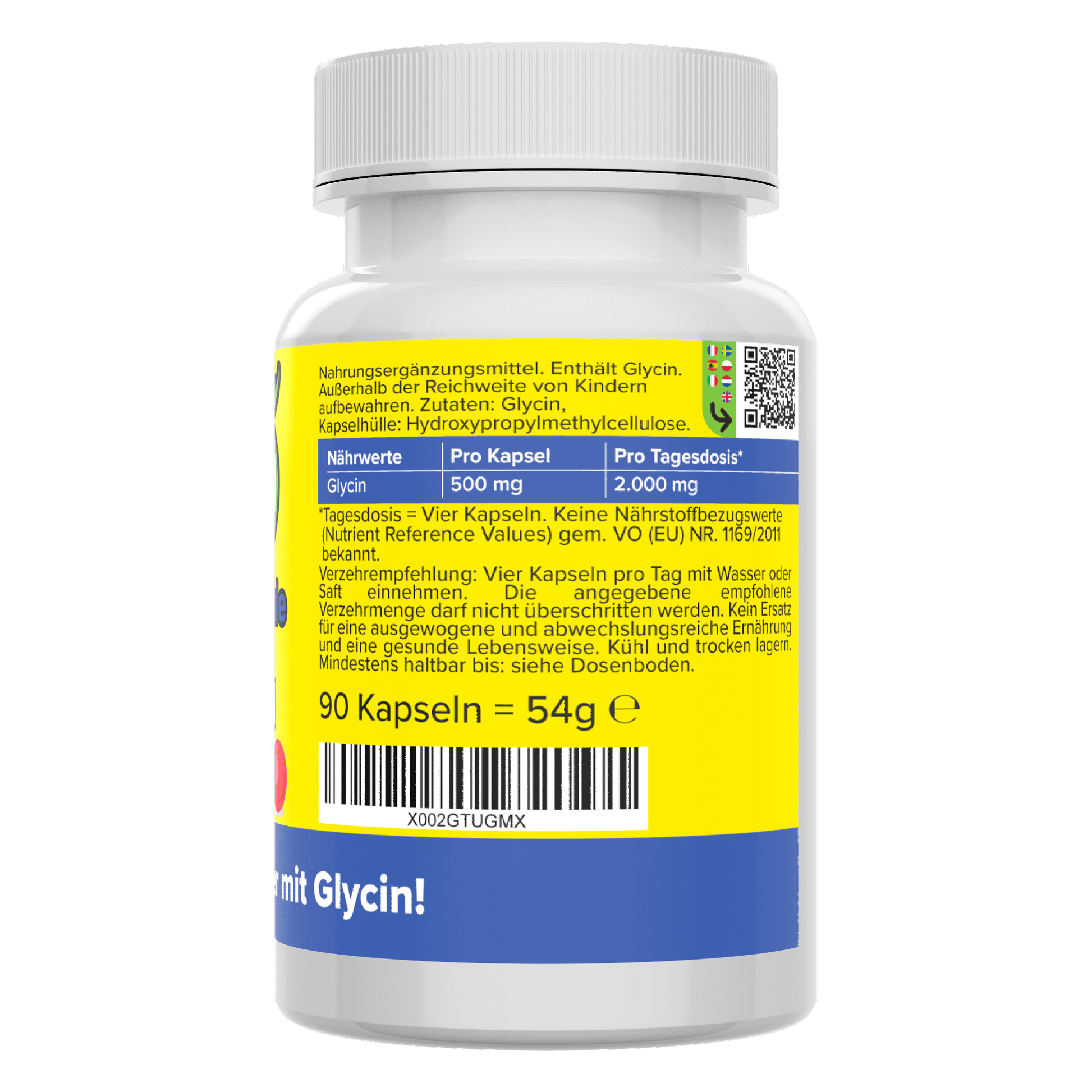 - 90 Glycin Kapseln mit 500 mg Glycin pro Kapsel