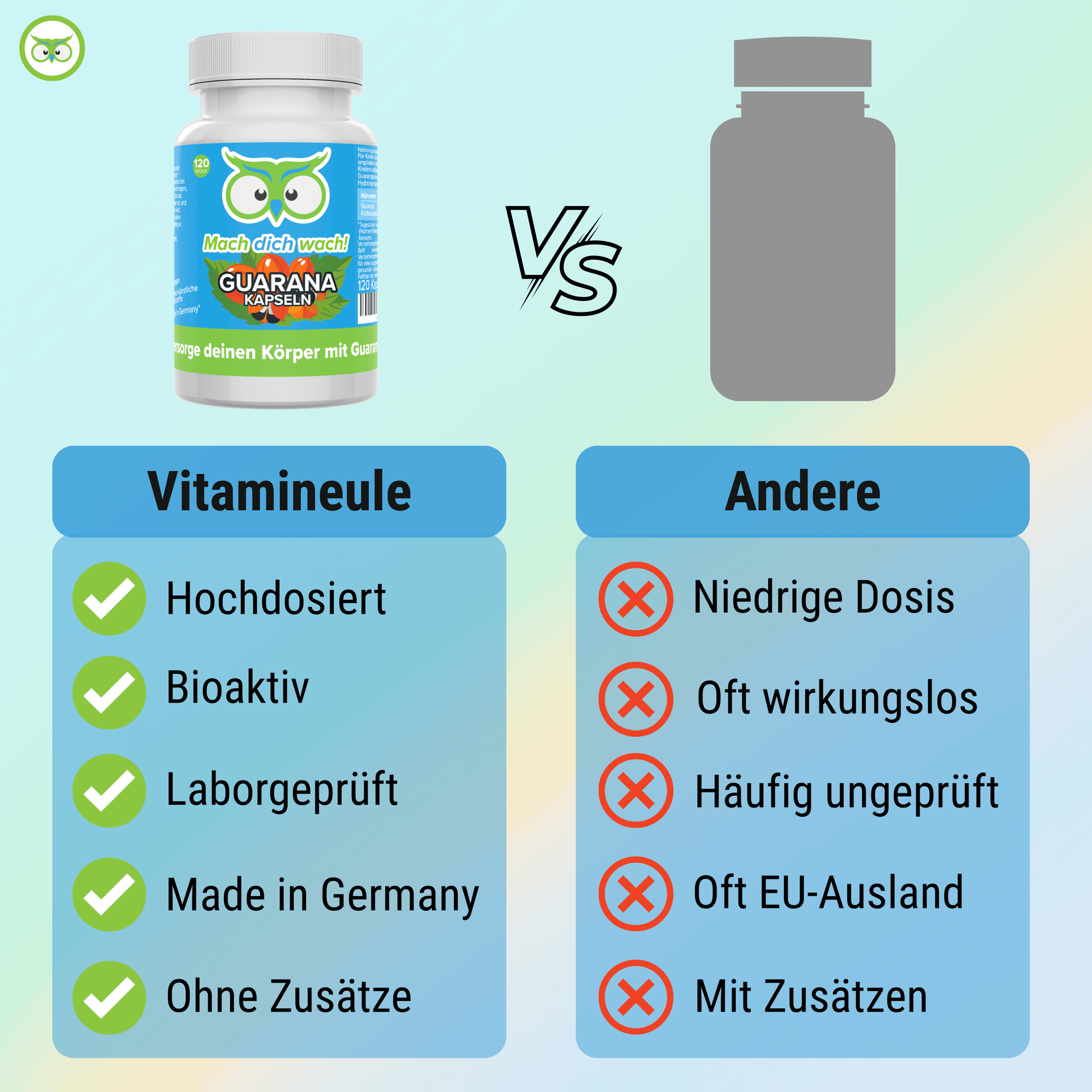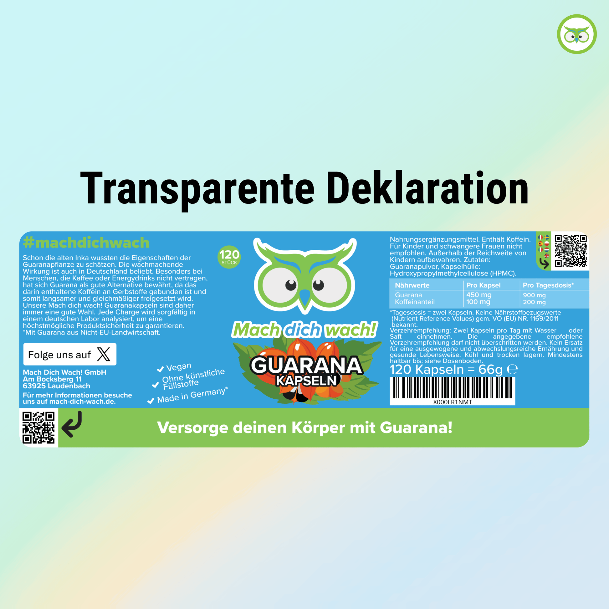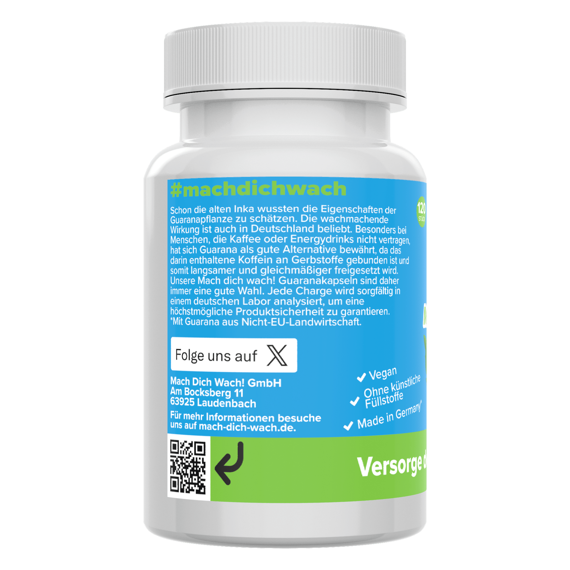 Guarana offers a natural alternative to synthetic caffeine and is valued for its gentle properties. Our guarana capsules are the first and only ones without artificial additives and contain only pure guarana in a vegetable capsule shell. Perfect for anyone who prefers a natural form of caffeine.